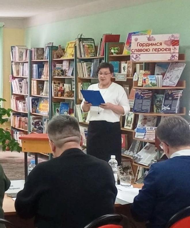 Библиотекарь Баклушинской сельской библиотеки нашего района Елена Перетокина рассказала собравшимся о том, как она третий год реализует проект «Код памяти», целью которого является формирование патриотических чувств у пользователей библиотеки через чтение книг и участие в патриотических и краеведческих мероприятиях.