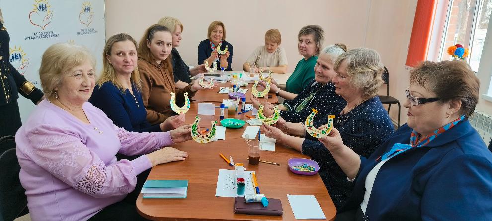 Завершился круглый стол творческим мастер классом по изготовлению оберега для близкого человека в виде подковы. Его провела специалист по работе с семьёй Надежда Никифорова. Женщины с увлечением раскрашивали заготовки, декорировали их яркими пайетками и блёстками.
