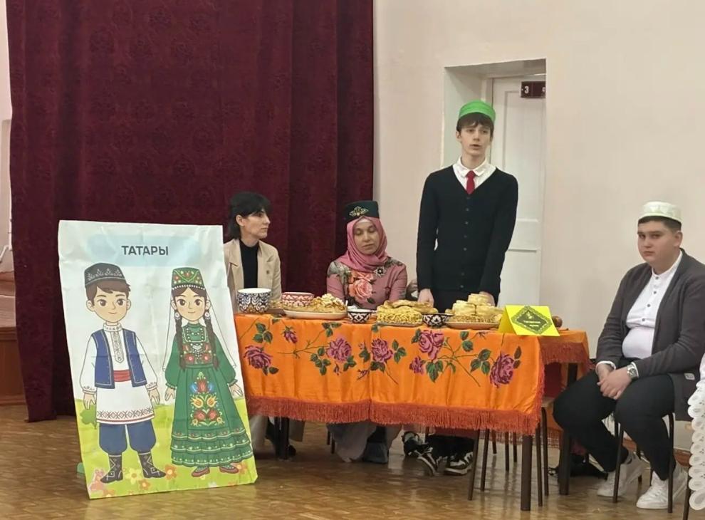В обращении к коллегам, Ольга Орлова отметила, что в Росташовской школе – многонациональный коллектив учителей и учащихся. В подтверждение этого каждая группа учеников 5-11 классов рассказали о людях одной из национальностей, проживающих на территории Росташовского муниципального образования, в том числе о своих однокашниках, которые учатся в школе. Это: русские, армяне, татары, казахи, азербайджанцы. Кроме того, был подготовлен материал о традициях, культуре, национальных костюмах, кухне народов России.