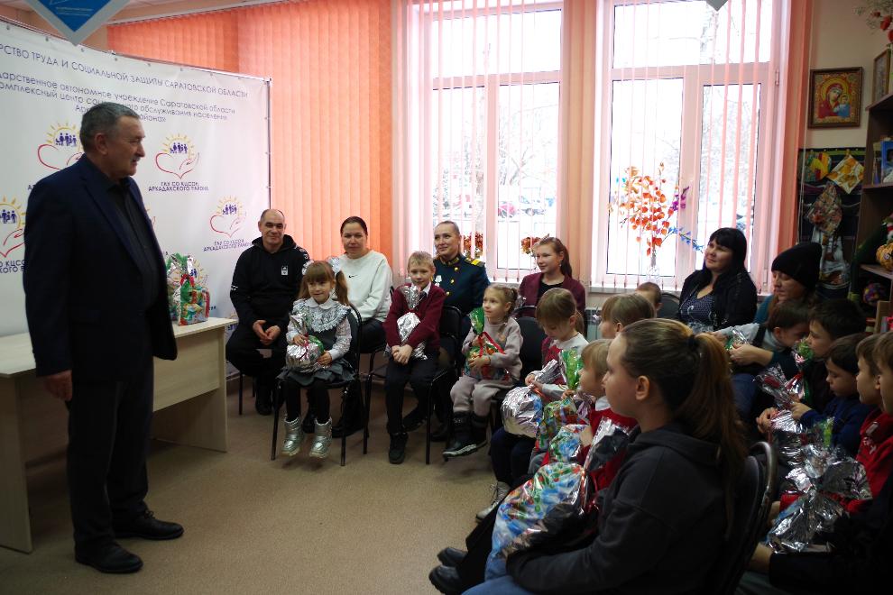 Встреча с семьями состоялась в Комплексном центре социального обслуживания населения Аркадакского района. Василий Михайлович лично вручил гостинцы ребятам. Многие дети активно вступали в общение, уверенно подходили к депутату и принимали сладости, но были и смущённые малыши, которые робко благодарили депутата за неожиданный сюрприз. А в конце общей дружеской беседы искренние улыбки сияли уже на лицах всех собравшихся. Общее настроение было светлым и радостным.В рамках Всероссийской акции «Добро без границ» депутат Саратовской областной думы Василий Кравцов вручил сладкие новогодние подарки аркадакским детям из многодетных, малообеспеченных семей и семей участников специальной военной операции.