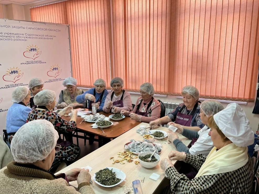 Получатели социальных услуг Комплексного центра социального обслуживания населения Аркадакского района собирают травяные чаи для бойцов спецоперации. Так они вносят вклад в общую победу, даря военнослужащим свою любовь и поддержку.