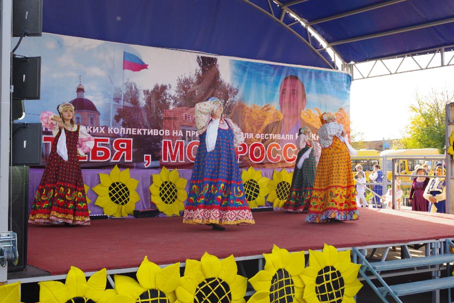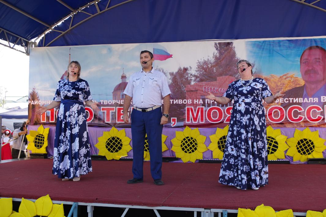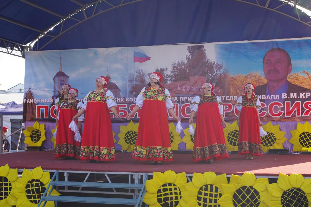 Открыл конкурсную программу Алексеевский сельский Дом культуры. Элла Мустафаева вложила в исполнение песни «Родина» всю свою душу. Молодая женщина пела про до боли знакомое – про отчий край. Каждый сельский Дом культуры представил в этой номинации свою песню. Баклушанка Виктория Улыбина, например, песней «Русский, русскому помоги» рассказала о силе нашей могучей страны и нашего народа. Грачёвский дуэт из Камилы Вербицкой и Марии Спириной выступил под лозунгом «Россия – в этом слове огонь и сила». Была исполнена песня «Вперёд, Россия!».
