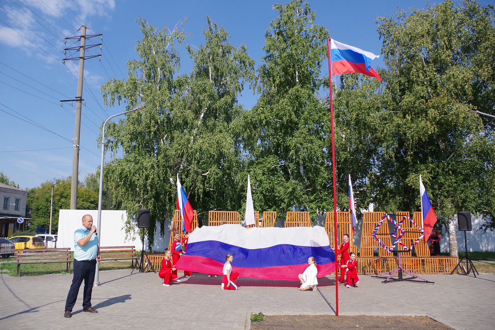 Над импровизированной сценой развевались флаги, триколор использовался во время выступлений. В сквере было солнечно, ярко и празднично.
