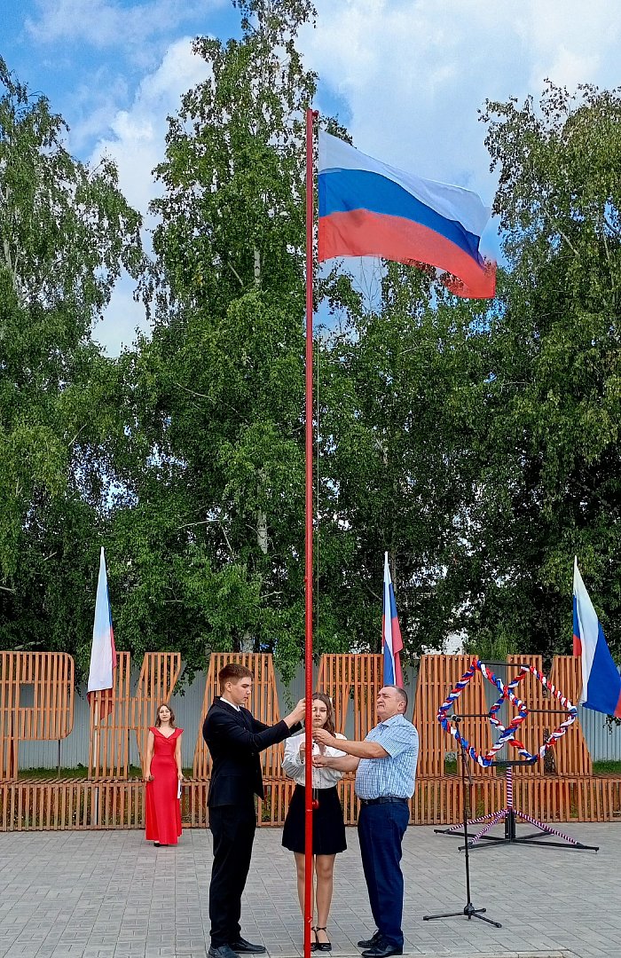 Над сквером в этот день тоже был поднят флаг. Его подняли депутат Саратовской областной думы Василий Кравцов и школьники Даниил Бондаренко, Кира Полусменкова.