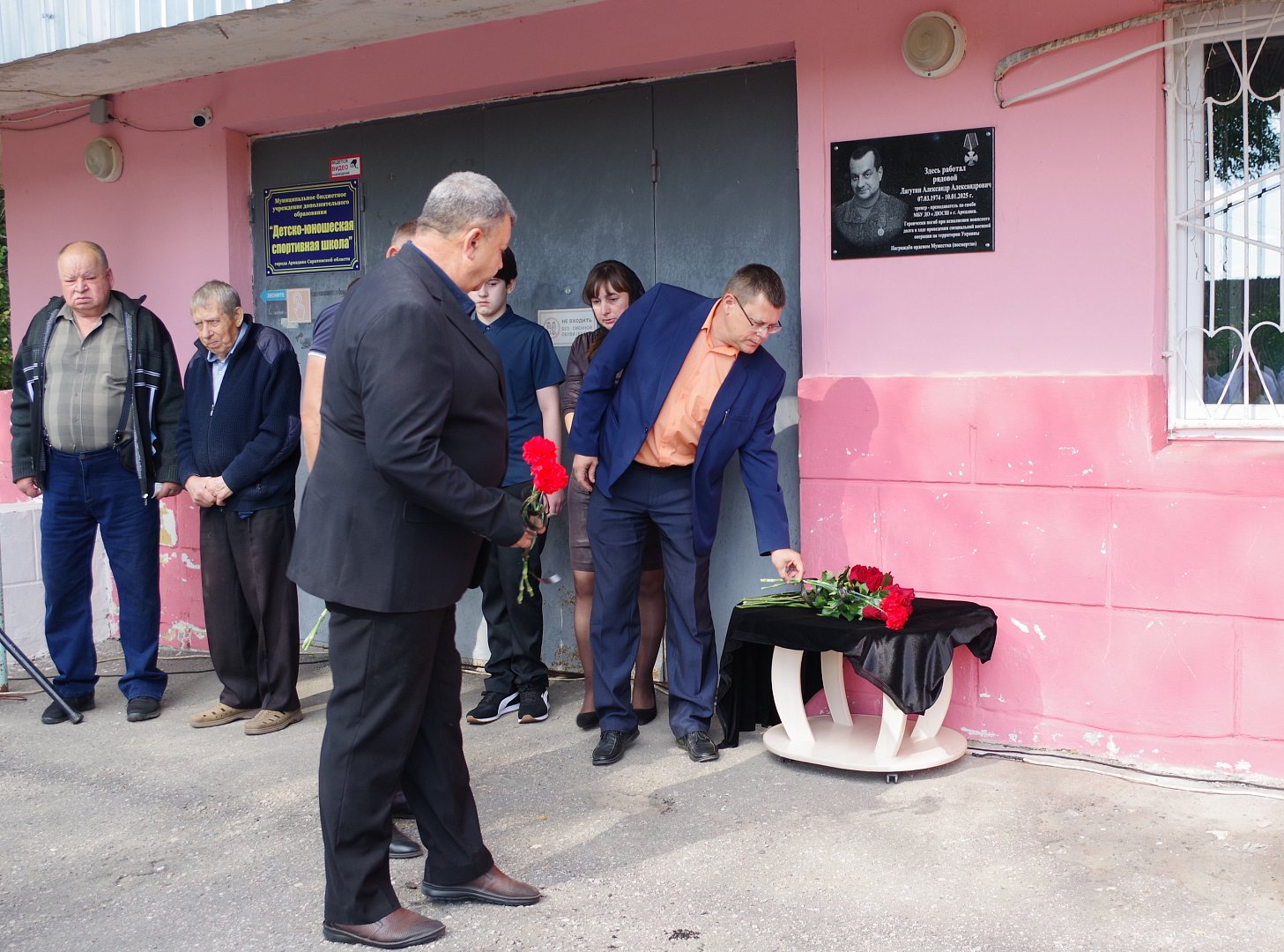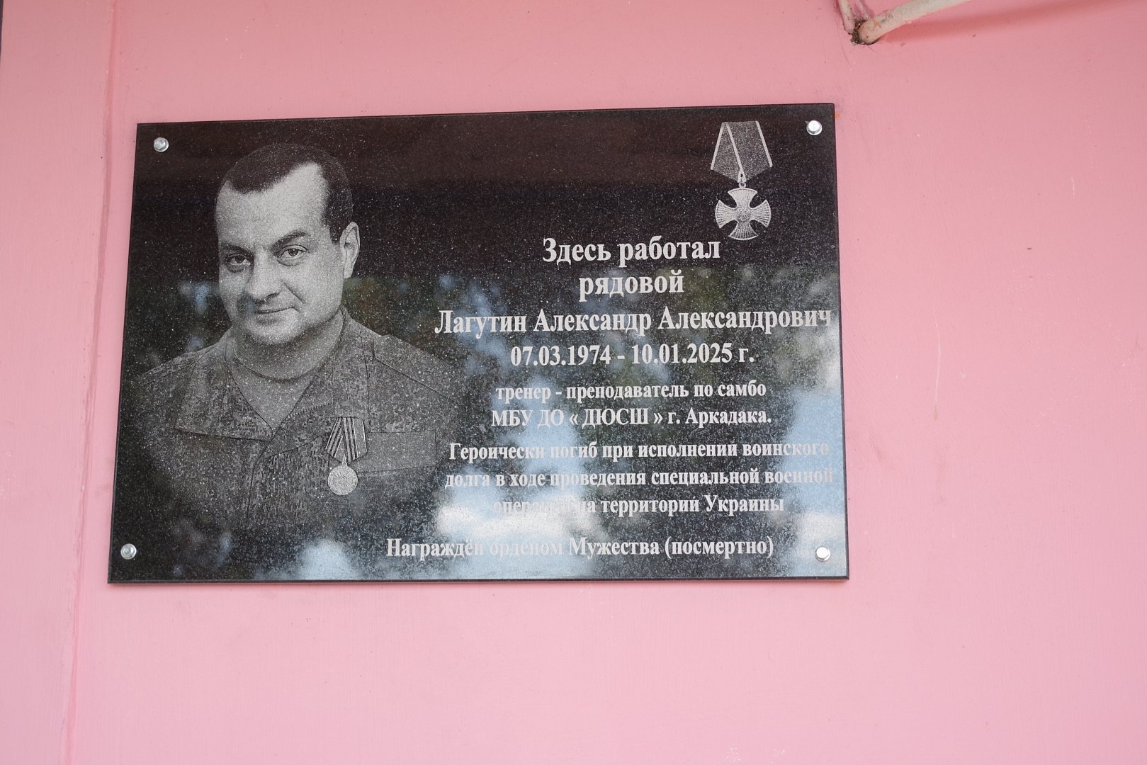 Памятную доску рядовому Лагутину Александру Александровичу, погибшему в ходе специальной военной операции на территории Украины, открыли в Детско-юношеской спортивной школе города Аркадака.