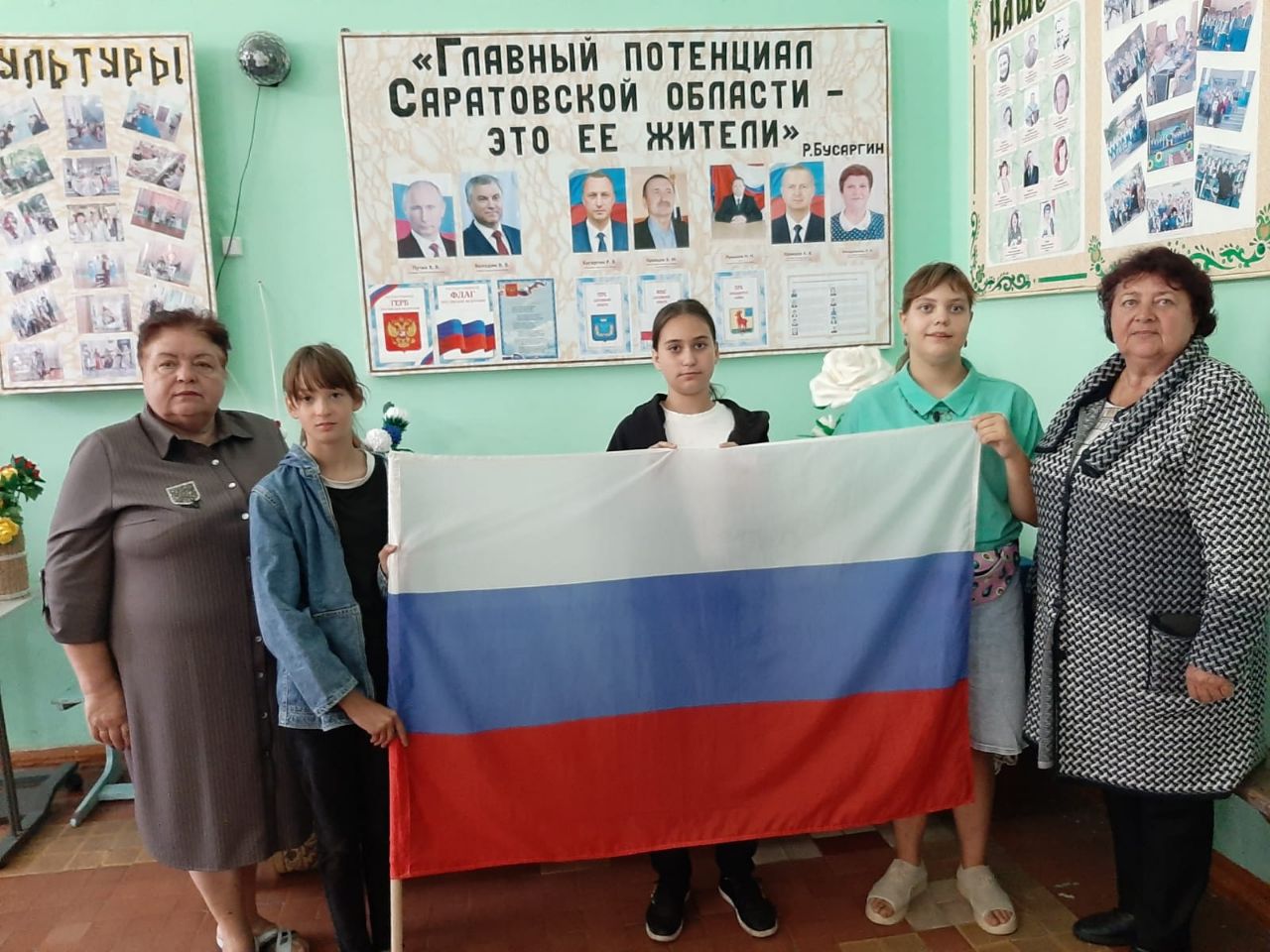 Учащиеся Новосельской школы в рамках акции «Символ народа» сфотографировались с флагом на фоне знаковых мест села.