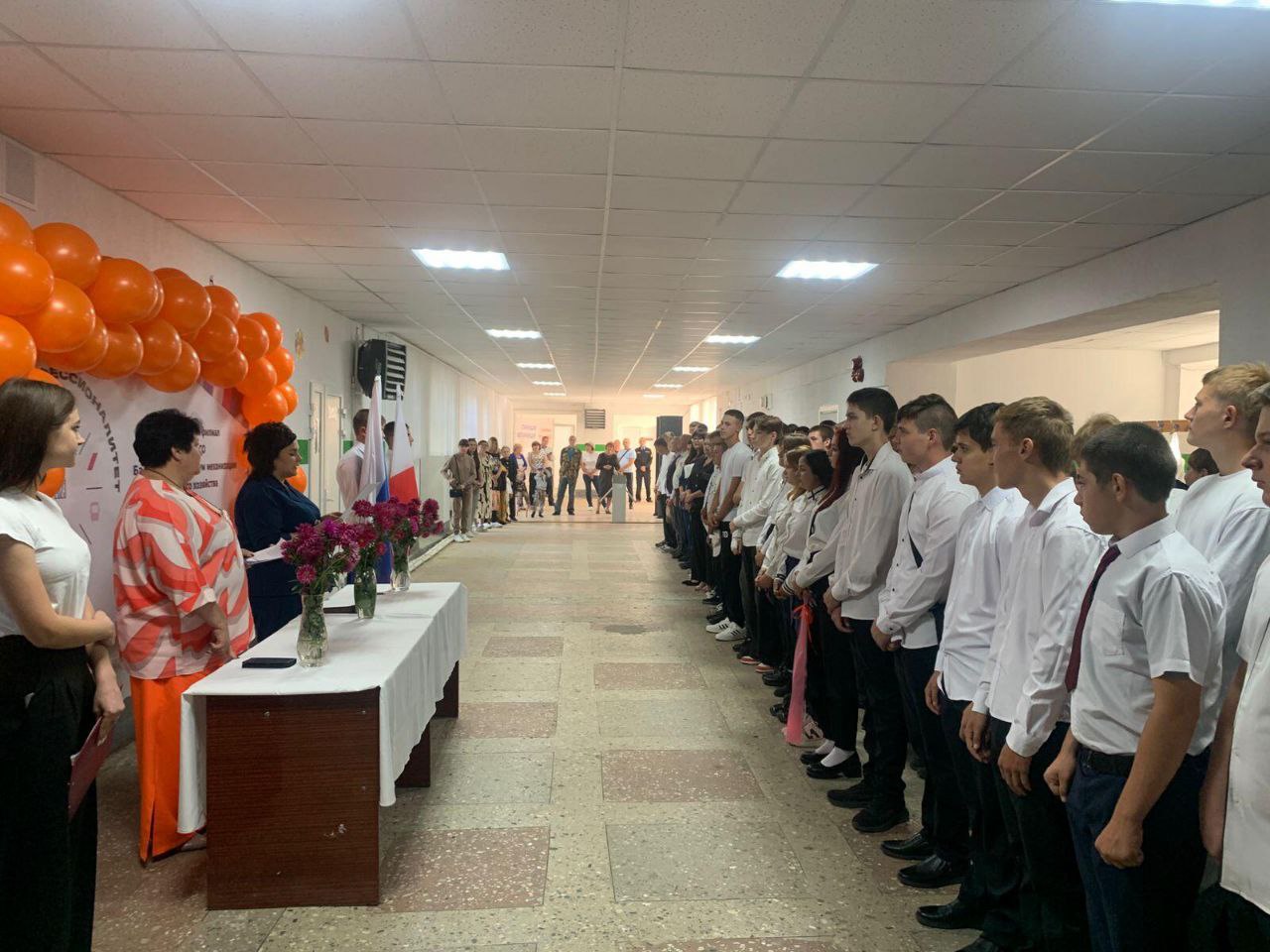 На торжественной первосентябрьской линейке заведующая филиалом техникума Ирина Герасимова поздравила ребят с началом нового учебного года, пожелала юношам и девушкам отличной учёбы, трудолюбия, быть активными участниками всех проводимых в техникуме мероприятий.