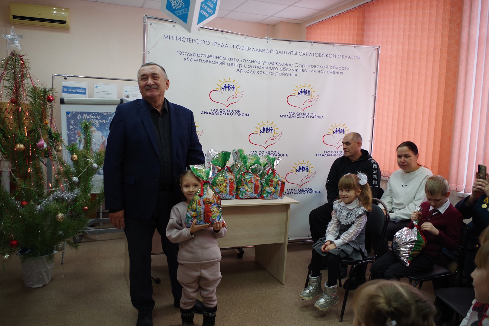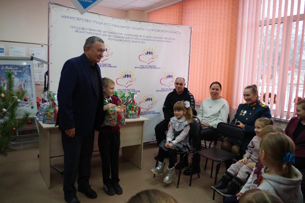 Встреча с семьями состоялась в Комплексном центре социального обслуживания населения Аркадакского района. Василий Михайлович лично вручил гостинцы ребятам. Многие дети активно вступали в общение, уверенно подходили к депутату и принимали сладости, но были и смущённые малыши, которые робко благодарили депутата за неожиданный сюрприз. А в конце общей дружеской беседы искренние улыбки сияли уже на лицах всех собравшихся. Общее настроение было светлым и радостным.В рамках Всероссийской акции «Добро без границ» депутат Саратовской областной думы Василий Кравцов вручил сладкие новогодние подарки аркадакским детям из многодетных, малообеспеченных семей и семей участников специальной военной операции.