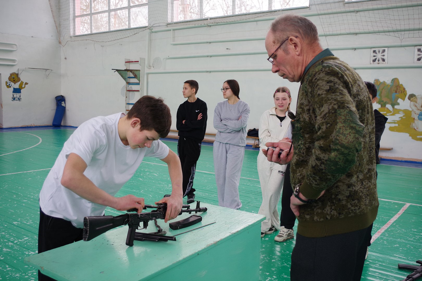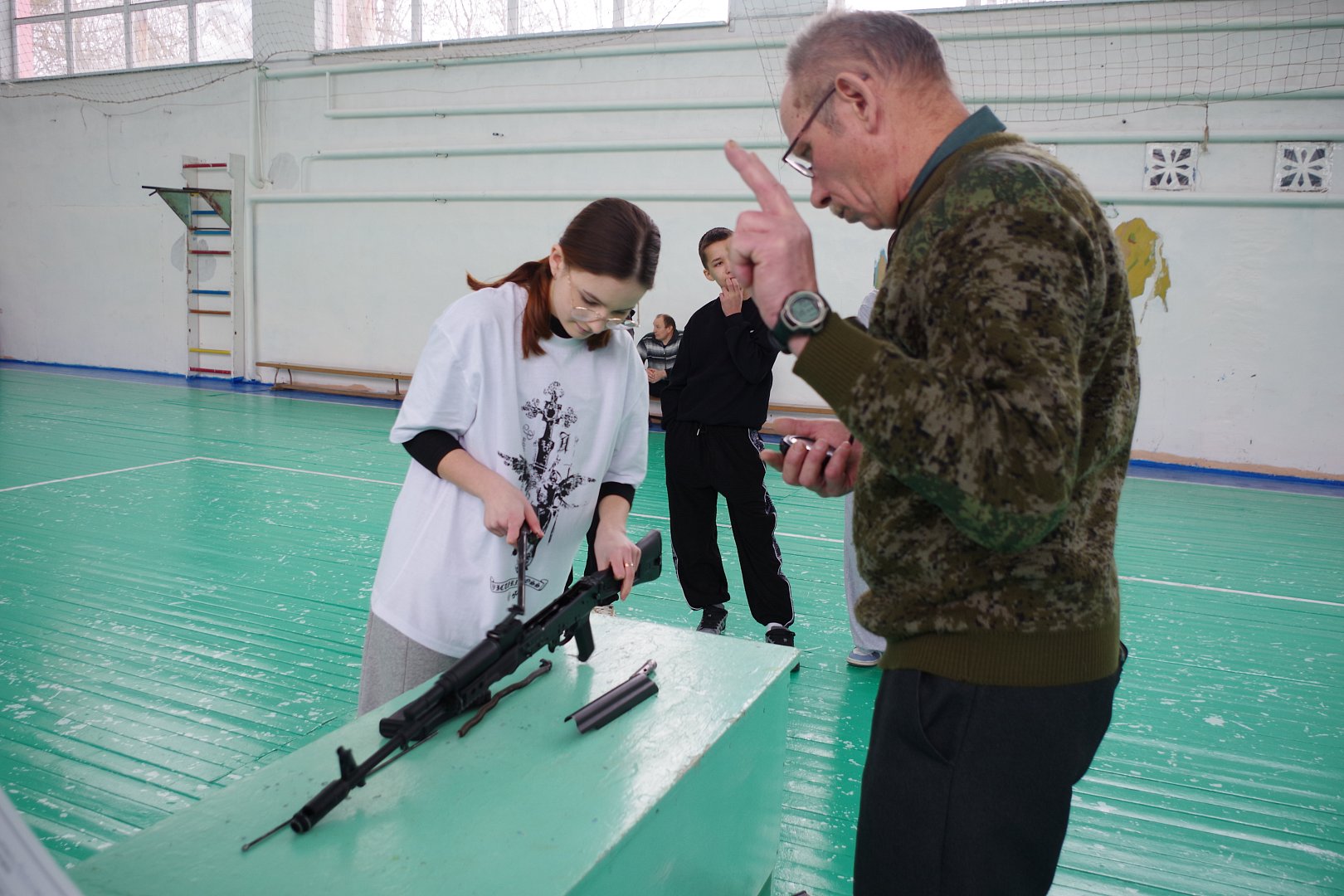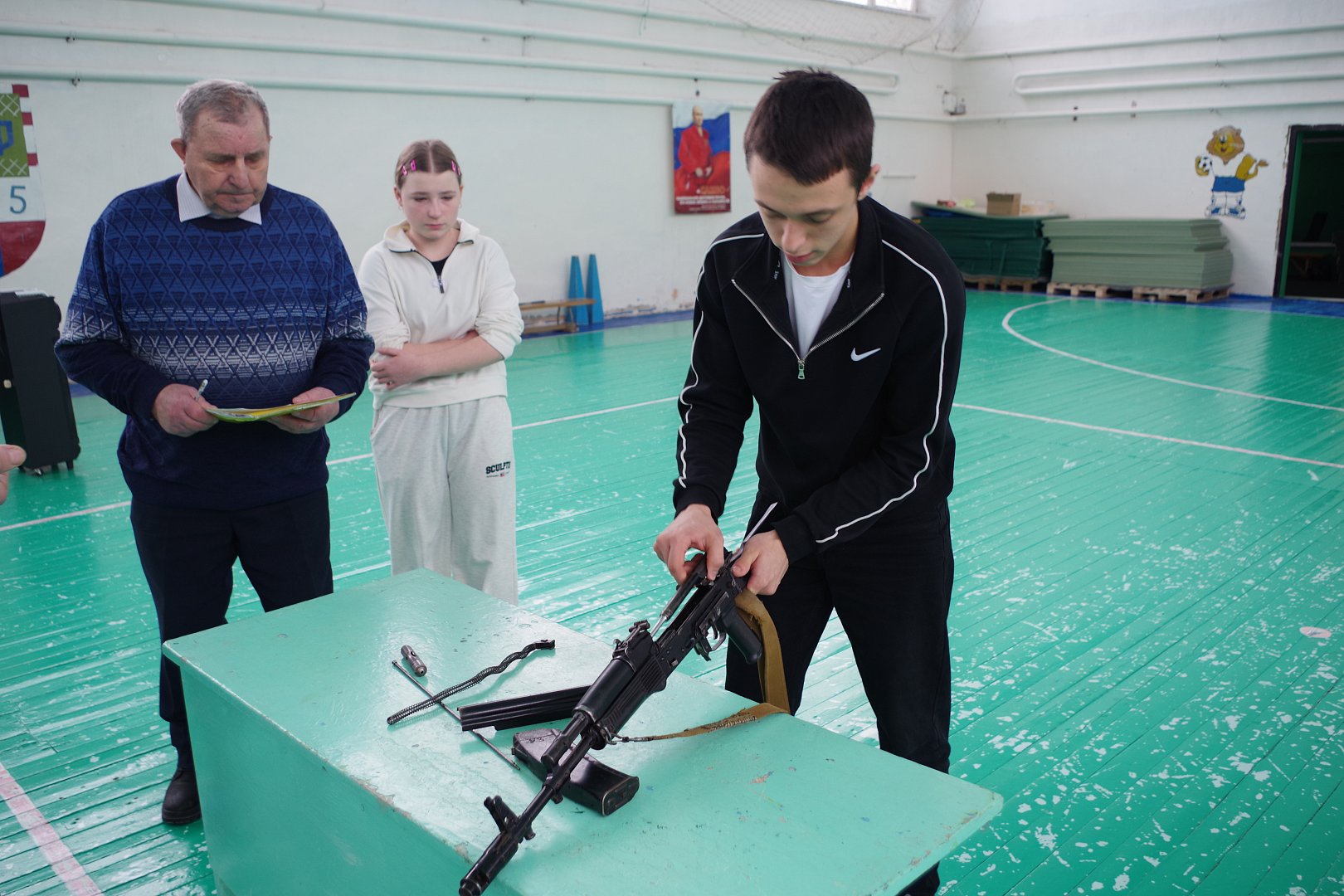 Программа фестиваля включила в себя стрельбу из пневматической винтовки из положения «стоя», которая плавно перешла в следующий этап соревнований - разборка и сборка автомата Калашникова. И завершились спортивные состязания соревнованием в сгибании и разгибании рук в упоре лёжа на полу.